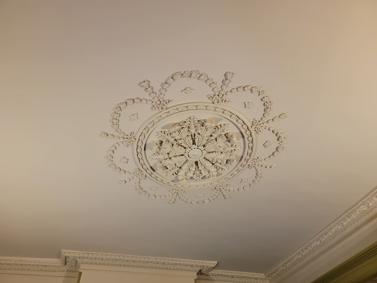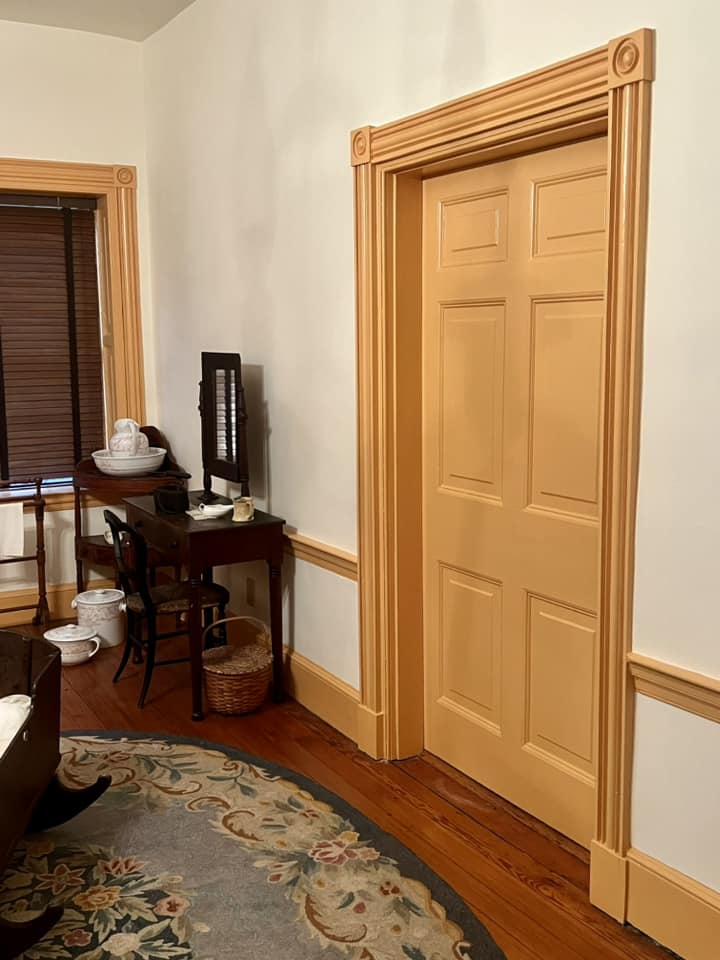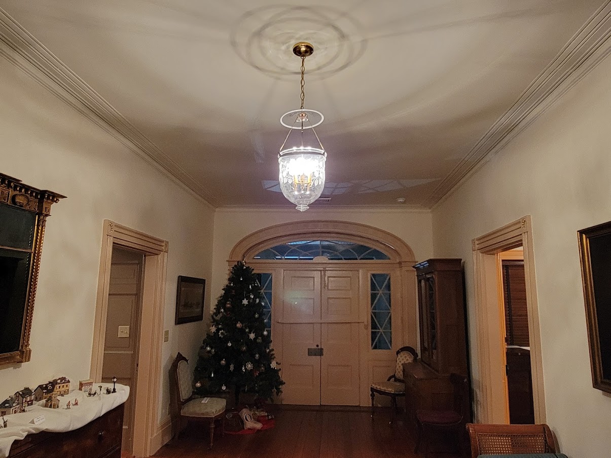 The well-preserved house was based on designs from Asher Benjamin’s American Builder’s Companion (1806), an architectural pattern book used widely by Virginia builders. The house retains virtually all of its ornate woodwork; most significant are elaborate ceiling medallions and the Federal mantels with slender Ionic columns supporting an embellished entablature and deeply molded cornice. The house was restored in the 1970s, with extensive marbelizing and the installation of Zuber scenic wallpaper. In 1984 the site was acquired by Chesterfield County and is now a museum administered by the Chesterfield Historical Society. A variety of living history programs offered at Magnolia Grange bring the 19th century to life.